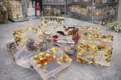 Each jar is thoughtfully made using organic goat soap base, jojoba and vitamin E oil, and delicate dried flowers. Free from harsh additives and heavy synthetic fragrances, these soaps are ideal for those who value clean, non-toxic skincare.